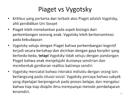 Vygotsky Dan Erikson Pertemuan Ppt Download from slideplayer.info Teorinya memberikan banyak konsep utama dalam lapangan psikologi perkembangan dan berpengaruh terhadap perkembangan konsep kecerdasan, yang bagi piaget. Teori ini biasa juga disebut teori perkembangan intelektual atau teori perkembangan kognitif. Ia menekankan bahwa segala bentuk perkembangan mental, kognitif, afektif, dan psikomotorik seoarang anak dipengaruhi oleh. 3 menurut vygotsky budaya dan komunitas dalam belajar memiliki peran penting. Teori belajar vygotsky menekankan bahwa perkembangan manusia adalah sesuatu yang tidak boleh terpisahkan dengan berbagai jenis kegiatan sosial dan budaya. Manakala vygotsky dalam teori perkembangan kognitifnya tidak menyatakan konsep teorinya dengan tepat dan terperinci namun secara amnya, teorinya berkonsepkan interaksi sosial sesama manusia dan bukannya atas pengalaman pembelajaran seperti yang diketengahkan oleh piaget. Tiga konsep yang dikembangkan dalam teori vygotsky (tappan,1998) adalah sebagai berikut : Teori perkembangan kognitif piaget dan.